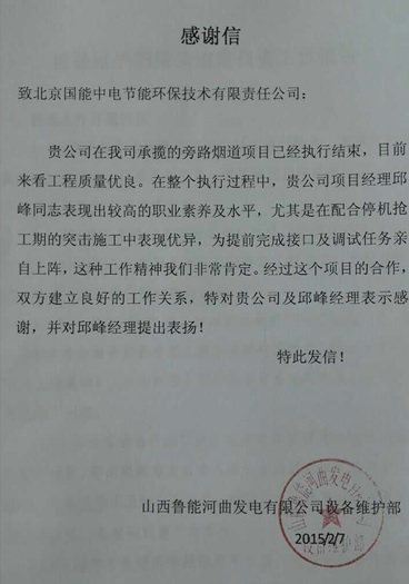 當(dāng)前位置: 國能中電公司動(dòng)態(tài)> 山西河曲EPC項(xiàng)目受業(yè)主贊譽(yù)