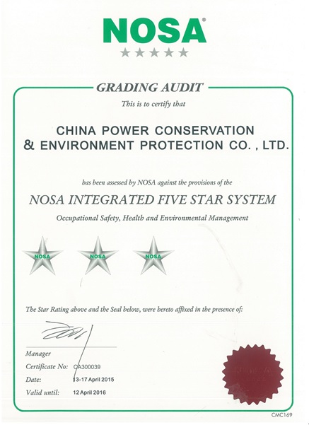 7月13日,經(jīng)過NOSA科學(xué)、嚴(yán)格地考評(píng),國(guó)能中電被正式授予“NOSA五星管理系統(tǒng)”三星級(jí)證書。