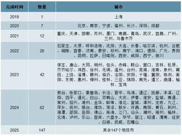 各地級城市垃圾分類推廣節奏逐步釋放。我們依據各城市已推行的垃圾分類政策及各城市生活垃圾清運量及處置規模等屬性推測垃圾分類政策推行進度??紤]到政策實際推行情況,保守假設垃圾分類年化市場釋放節奏為:2019年上海;2020年北京/南京/成都/深圳等7個重點城市;2021年重慶/天津/蘇州等12個重點城市;2022年46個重點城市中剩余的26個重點城市;2023年保定/大同/吉林等42個地級市;2024年邢臺/淮安/九江等62個地級市;2025年剩余的地級市。在空間測算中均以該推廣節奏為前提進行測算。